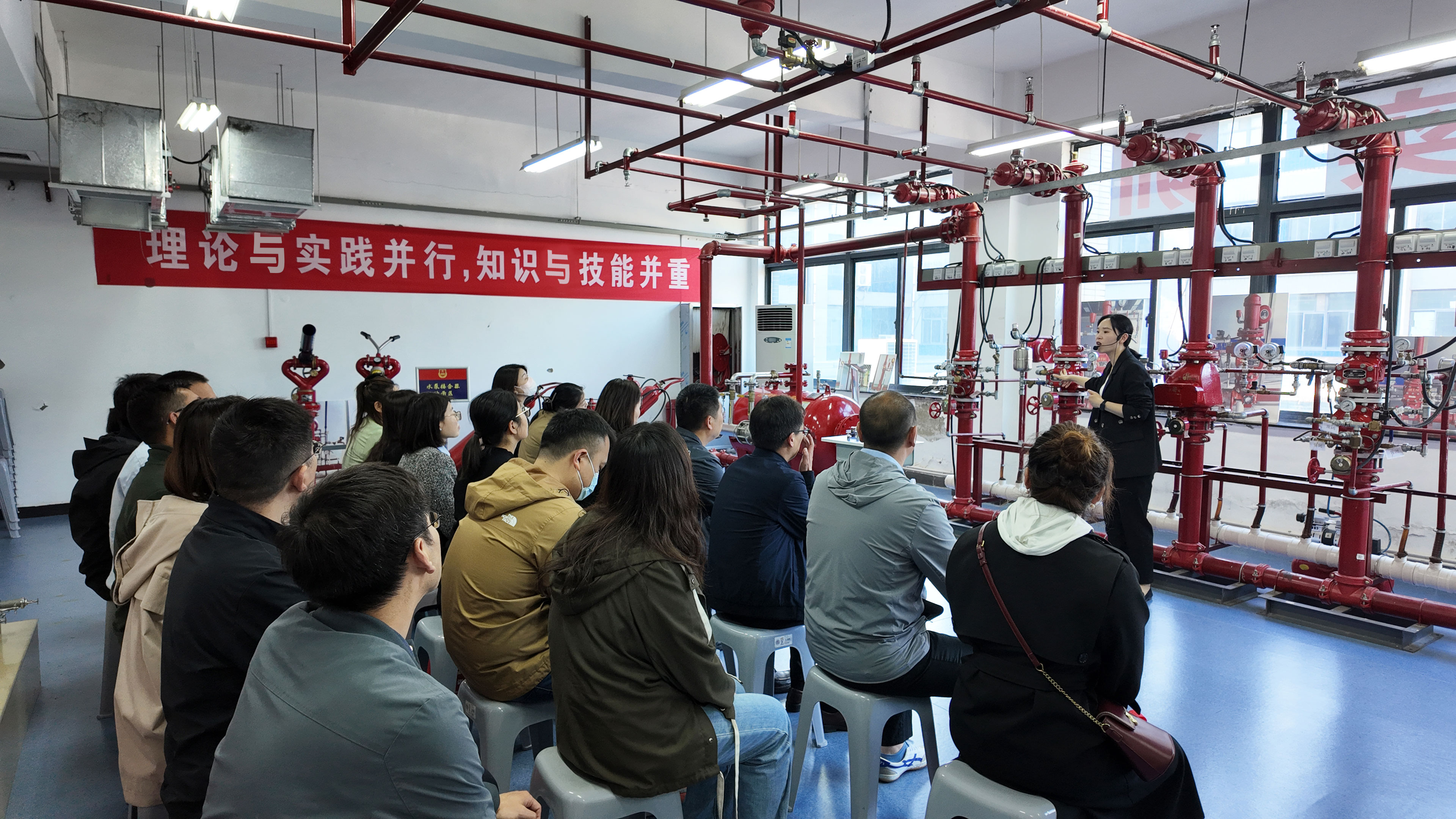 培訓中,具有注冊消防工程師資質(zhì)的培訓老師運用理論授課、實地講解、多媒體互動等多種教學方式,使參訓職工快速了解并掌握建筑常見消防設(shè)施及消防器材的動作原理和操作技能?!笆谌艘贼~,不如授人以漁?!痹谂嘤栠^程中,老師利用學校獨特的現(xiàn)場教學場景,針對九小場所“三合一”現(xiàn)象、違規(guī)違章動火作業(yè)、常見電氣火災隱患等實際問題進行了深入剖析和講解,并重點強調(diào)了日常消防防范管理工作的程序和重點,令大家受益匪淺。